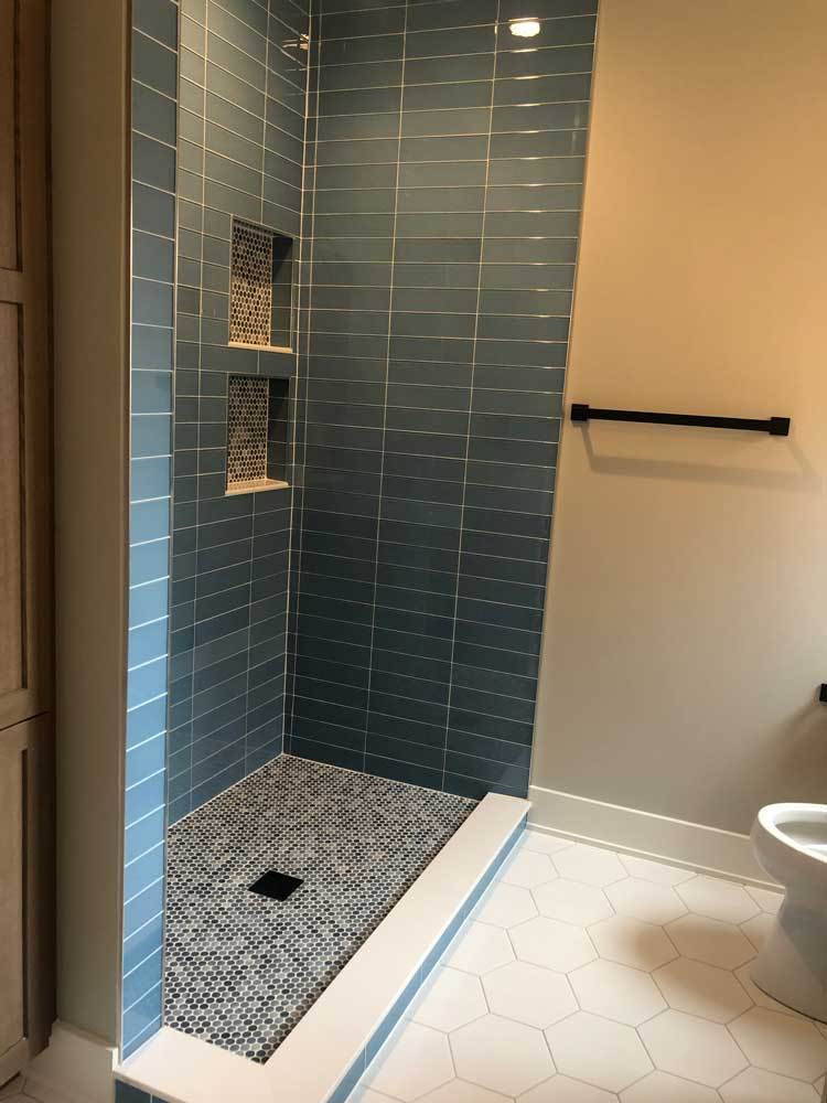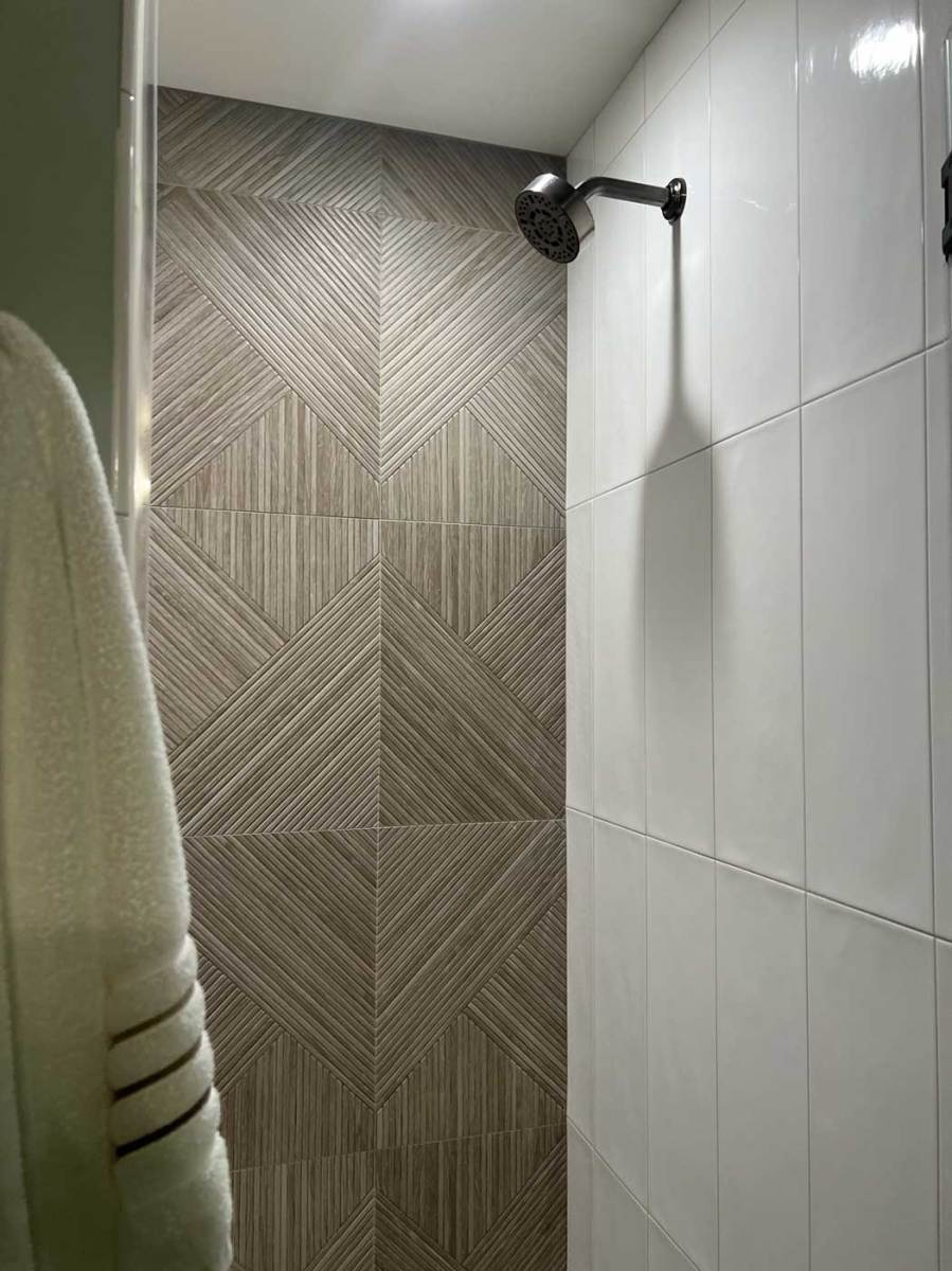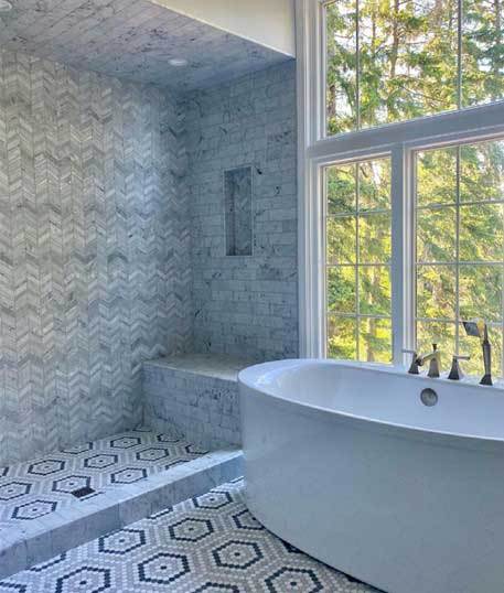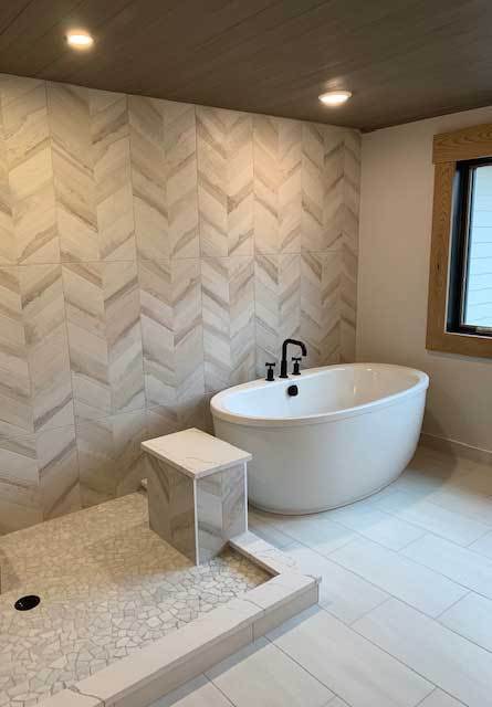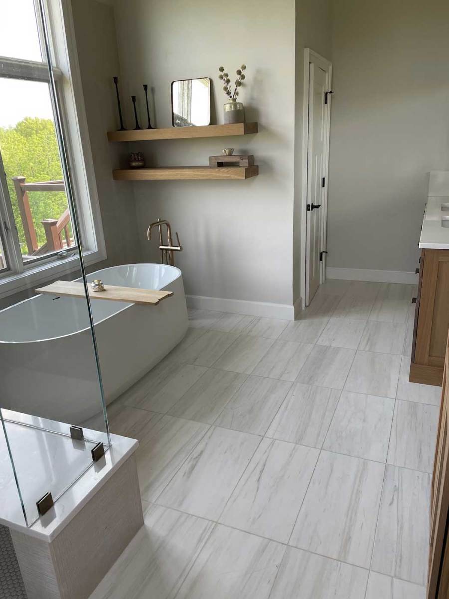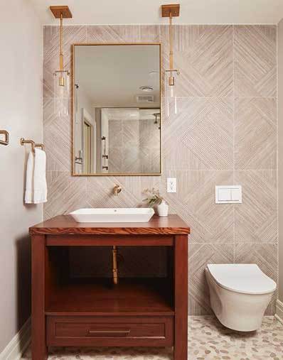 Large format tiles in the bathroom also continue to be a trend. Clients love the advantages of large format tiled surfaces in the bathroom because it means fewer joints and easier cleaning. These larger format can help get that spa feeling many are looking for, and definitely make any bathroom more chic.