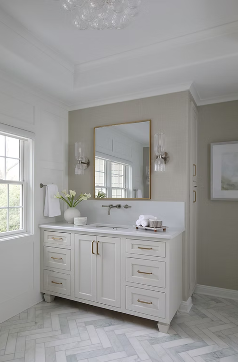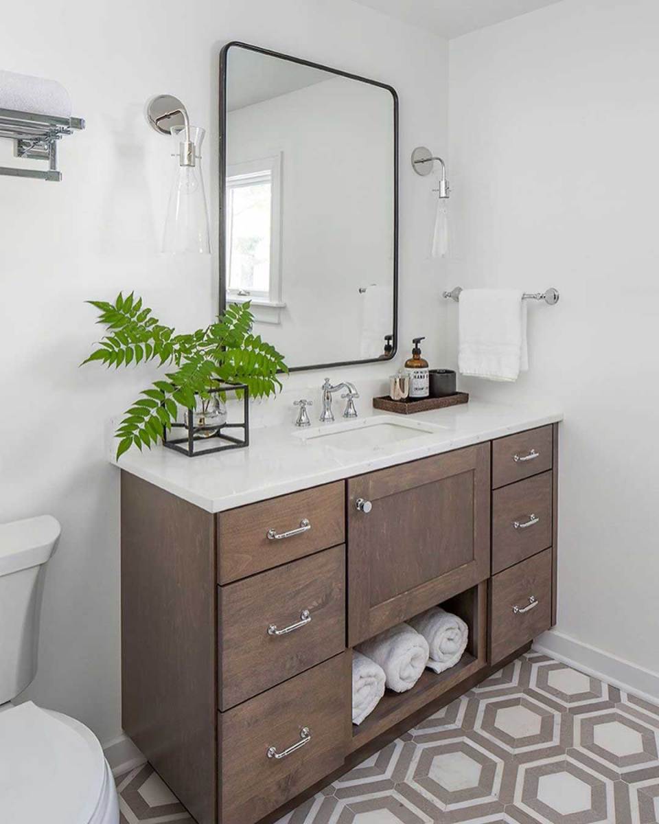 Bathroom fixtures his year will feature a variety of metals. Whether it’s bathroom faucets, towel rails, toilet roll holders or shower heads, there’s going to be a definite metallic accent. The look creates a lived-in aesthetic as if the bathroom has evolved organically.