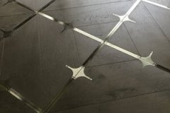 Another way we are seeing the use of brass is in cement and also terracotta tiles in various sizes from 4x4s to 4x8s. Such a fun way to incorporate a pop of shine and glitz to any room – and you can do it in a subtle way that will not date the room 20 years from now.The third and probably our personal favorite is inlaid into wood. I mean, it couldn’t be more stunning! Set within a French Engineered Hardwood from our specialty Tabarka Line, this flooring is the perfect grand entry way, hallway, living room or study. It’s so unique and adds the perfect touch of luxury wherever it goes.