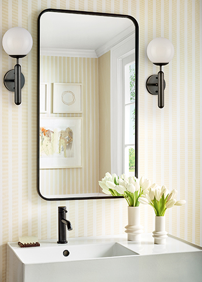 If being bold isn’t your style, your wallpaper selections don’t have to be daring to make a big impact. We have a wide selection of soft-textured wallpapers in an array of colors that are made from grass cloth and other natural materials. Natural fiber papers come in a rainbow of colors and add texture and interest to your walls. Grass cloth has become one of the most popular wallpaper choices and many wallpaper manufacturers have created performance vinyl options that mimic actual grass cloth to help meet the demands of a busy household. The durability of vinyl is perfect for places with high amounts of contact and steam like a bathroom.