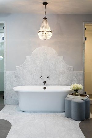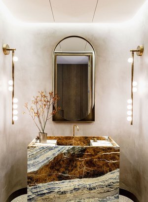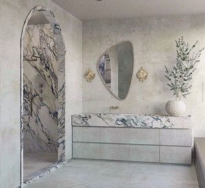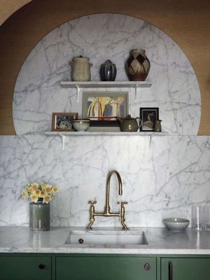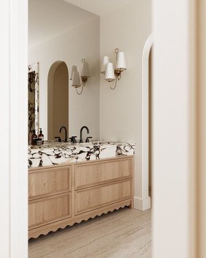 Another trend we are just loving is a curved marble backsplash – both in the kitchen and in the bathroom – it sounds boring but the way they can create almost any shape really brings interest to the space.