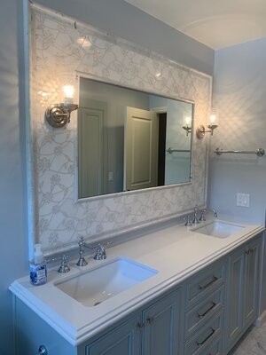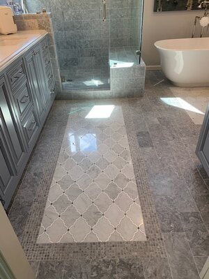Like most of us “sheltering in place,” we see every nook and cranny of our home space with a much more critical eye – how could you not when you’re staring at it 24-7?!? That ugly bathroom floor that you never got around to replacing when you moved into your house 10 years ago and now you can’t look at it one more day? We’ve got you covered!! We wanted to share how easy it is for us to help you create a beautiful space virtually. The project we are sharing here was done completely without in-person contact and it was just as much fun, and just as rewarding for the client (and for us) than if they had come to the showroom and made all their selections there. It really is easier than ever before thanks to technology. During this time of social distancing, and what will likely become somewhat of a new – normal, technology has been and will continue to be a life-saver. Phone calls, emails, Facetime, Zoom conference calls … all helping us keep in touch and stay connected.